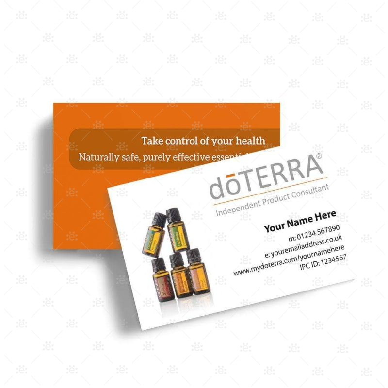 Our dōTERRA® approved business cards are produced using 350 gsm coated card stock with a matte front, silk-coated back and a durable feel. Matte varnish has a rich texture for a classic and elegant look. They are available in a 2 sided option, or a 4 sided option which includes a tear off card to collect your customer's details. The 4 sided folding cards are perforated in the middle for easy separation.