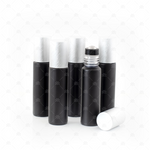 Contents: Set of 5 10ml Frosted Glass Roller Bottles, Premium Stainless Steel Rollers and Metallic Caps.