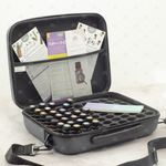 The case also contains a handy pouch inside to house your rack cards and mini tearpads. This sleek carrying case makes carrying oils with you to meetings, events, and trade shows exceptionally easy.