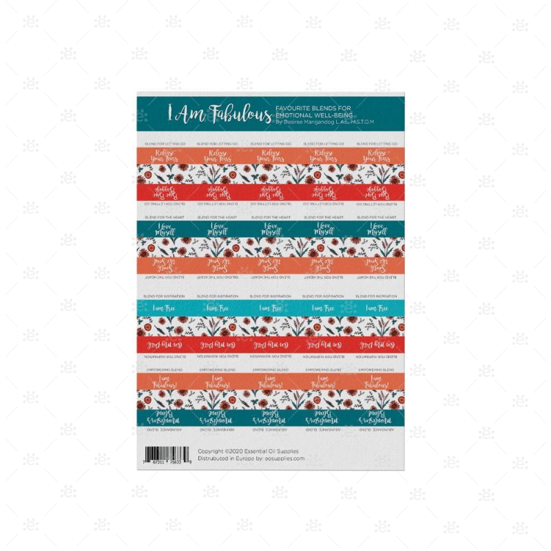 This label sheet complements our I Am Fabulous: Blends for Emotional Wellness by Desiree Mangandog and contains 40 labels with 8 varieties of the most used and favourite blend recipes. Use this sheet in conjunction with the I am Fabulous Favourite Blends Lid Stickers (sheet of 40).