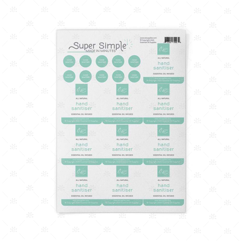 Super Simple : Made in Minutes Hand Sanitiser label sheet.
