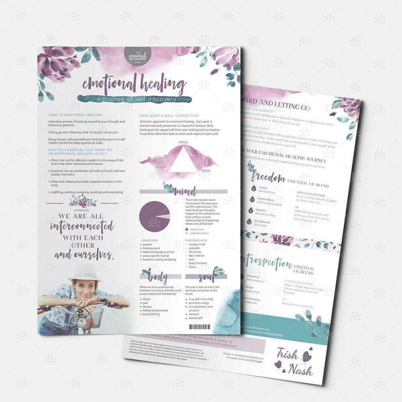 Verwenden Sie dieses Tränenkissen als Handout für Neueinsteiger in ätherische Öle oder als Grundlage, um neben Trish Nashs Buch einen Bildungskurs über emotionale Heilung zu unterrichten; Emotionale Heilung mit ätherischen Ölen: Eine Reise der Selbstfindung. Kombiniere dieses Material mit den kostenlosen Einsteckkarten, um dich und deine Kontakte mit allem auszustatten, was sie brauchen, um ihre Reise der Heilung zu beginnen.