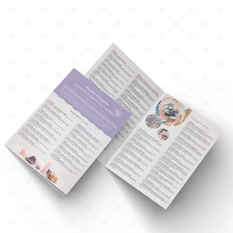 As well as safety & usage tips, you will also discover within this chart the most suited crystal for each of the most popular single oils, as well as for blends.
