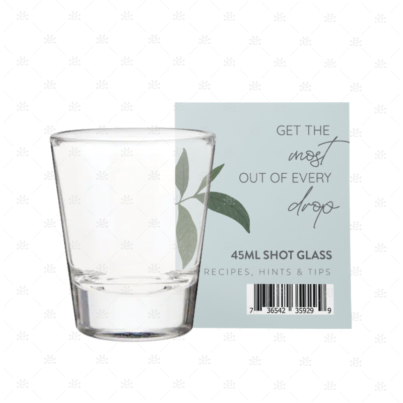Contents: 45ml Shot glass with multi fold recipes, hints and tips brochure