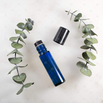 10ml Blue Glass Roller Bottle with Black Lid & Premium Stainless Steel Rollerball - 5 pack (NEW STYLE)