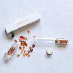 Contents: 10g (enough to part fill 3 x 10ml roller bottles) boxed carnelian gemstone tube