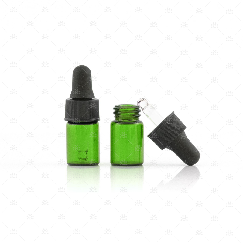 Contents: 5 x 5/8th dram green glass dropper bottles