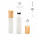 Contents: Set of 5 x 10ml Matte White Glass Roller Bottles, Premium Stainless Steel Rollers and Copper Metallic Caps.