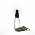 This 15ml clear glass bottle comes with a black pump mist spray head and clear plastic cap for protection.