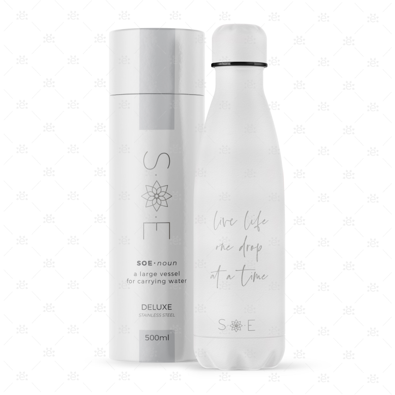 SOE is the brand name for our exclusively designed range of drinking bottles. SOE is defined as a vessel for carrying water (albeit wooden!) but it also represents our unique quality brand (EOS = SOE backwards). What better name than this for our newest collection of Deluxe Water Bottles!