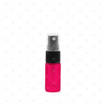 Contents: 5 x 5ml Pink Deluxe Frosted Spray Bottles with black fine misting spray tops and clear plastic caps.