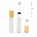 Contents: Set of 5 x 10ml Matte White Glass Roller Bottles, Premium Stainless Steel Rollers and Gold Metallic Caps.