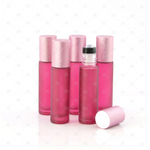 Deluxe Frosted 10ml Pink Roller Bottles with Pink Metallic Caps & Premium Rollers (5 pack)