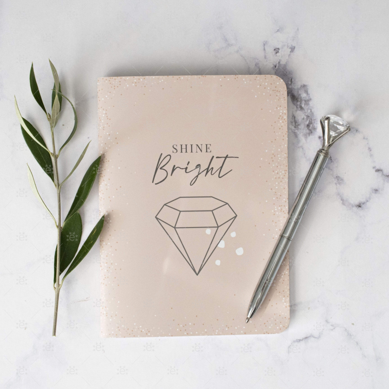 Make notes that are packed with inspiration, creativity and a dash of sass with this "Diamond" inspired notebook and pen set. The A5 notebook contains cream inner pages with fine dotted lines and a tasteful diamond accent on each page.
